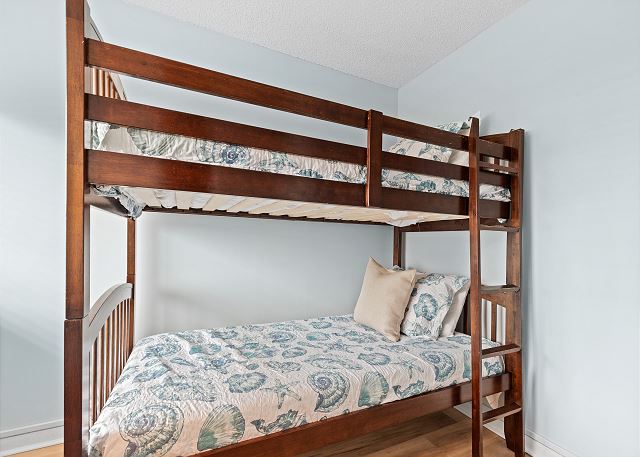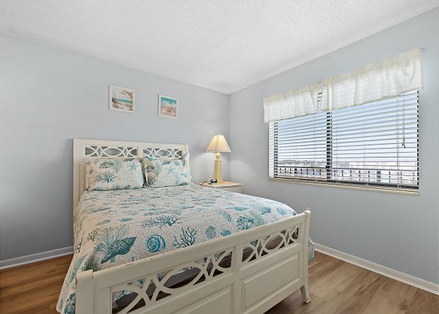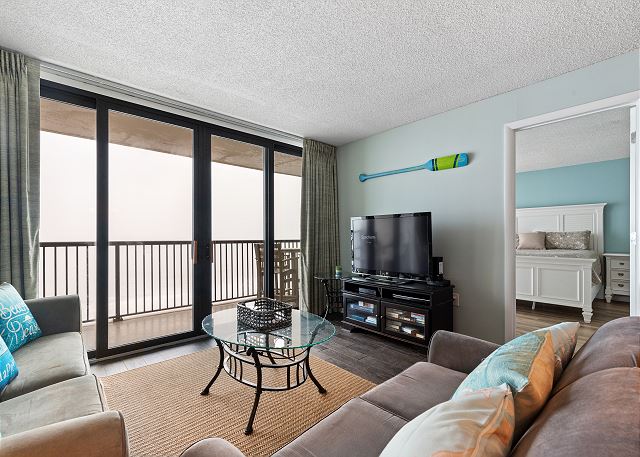 There's an ocean front master bedroom (1 King) with access to the balcony. Guest room (1 Queen) has bright double windows with great views of the beautiful natural marsh and with NMB city views the boulevard will sparkle at night! Another guest room (Twin bunk beds) is perfect for the little ones. Flat screen TV's, in the bedrooms and living room, with DVD player as well. Living room has a sofa (sleeper sofa) and love seat. Plenty of seating around the dining table (seats 6) means home-cooked meals will taste better after a wonderful day on the beach! Please sign the "guest book" before you leave, to let the owner know the details of your best beach memories!