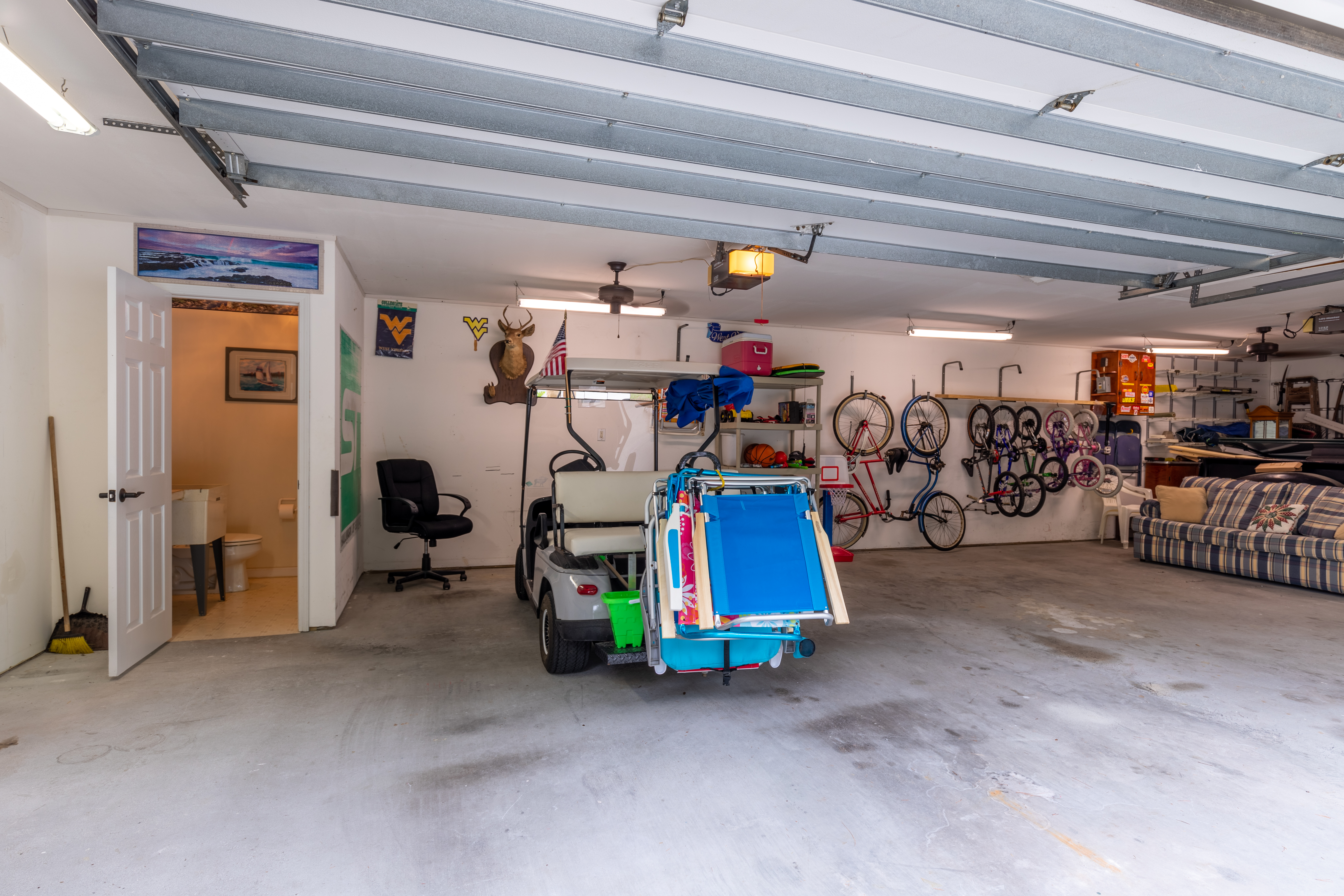 There is parking for 5-6 vehicles in the driveway and a shared garage area for use of the owners golf cart and beach supplies for the kids. There is basketball and corn hole, or take it easy in the hammock. Enjoy the front porch rocking chairs and swing, or the open back deck that allows for great grilling (gas propane) and activity space. The kids can run and play. There is an outdoor shower (hot & cold water) for rinsing the sand. Conveniently, there is an easily accessible, extra (3rd) bathroom, within the garage, for outdoor access without tracking into the house.