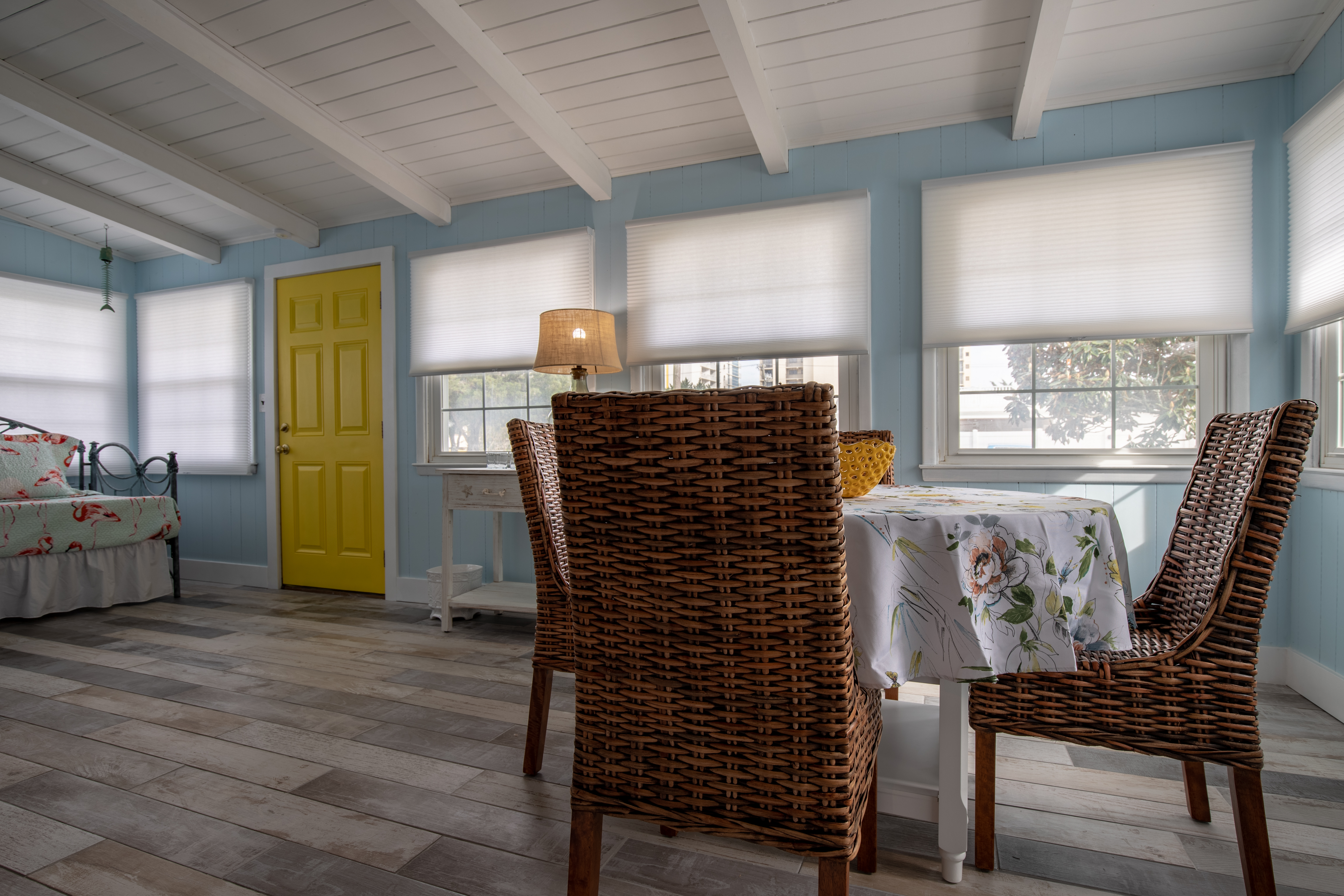 In total, there are 4 bedrooms, with 2 King beds, 2 Queen beds and 4 Twin beds. All have new memory foam mattresses. All of your beds will be freshly made upon arrival, with bath linens included, and cleaning provided at departure.