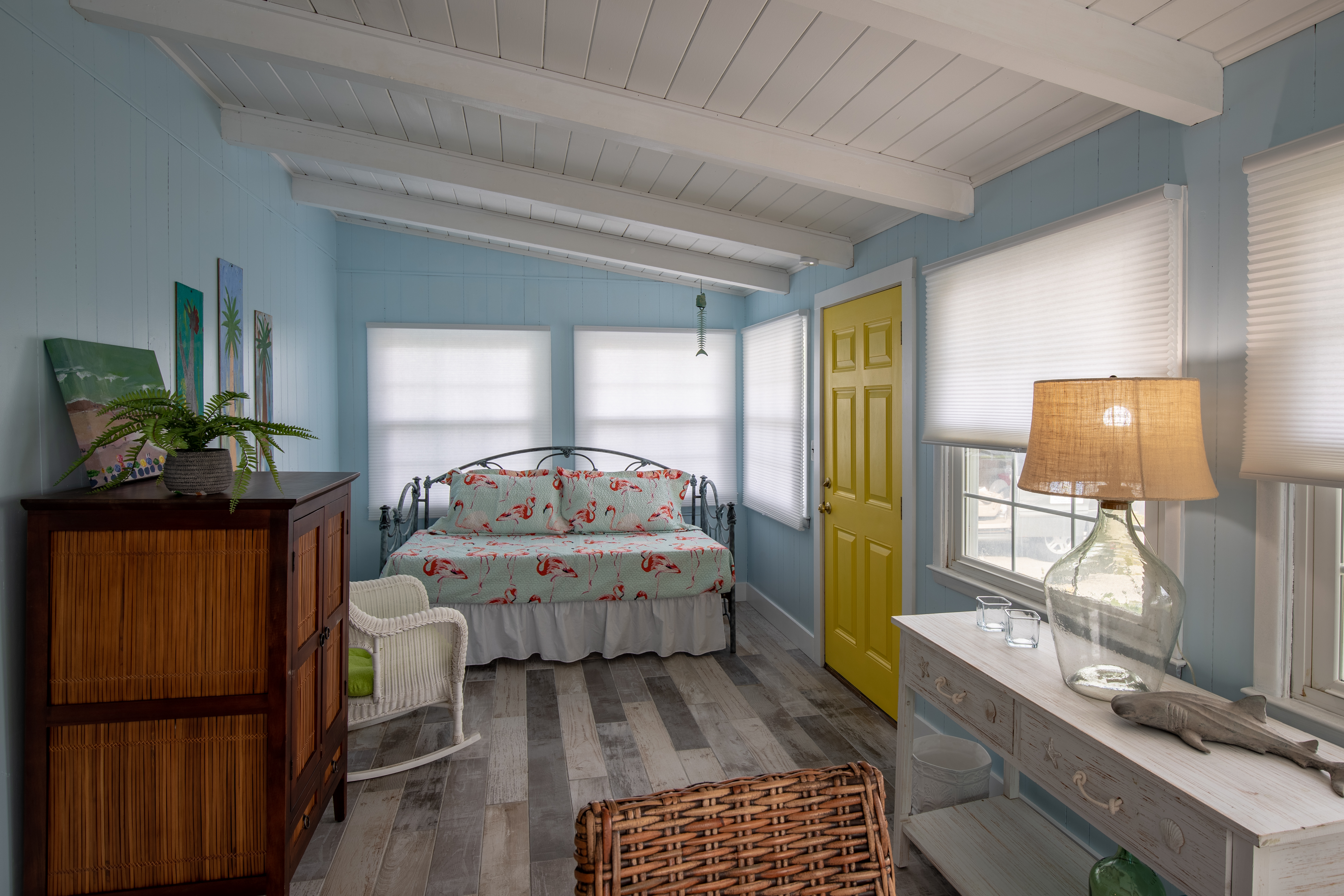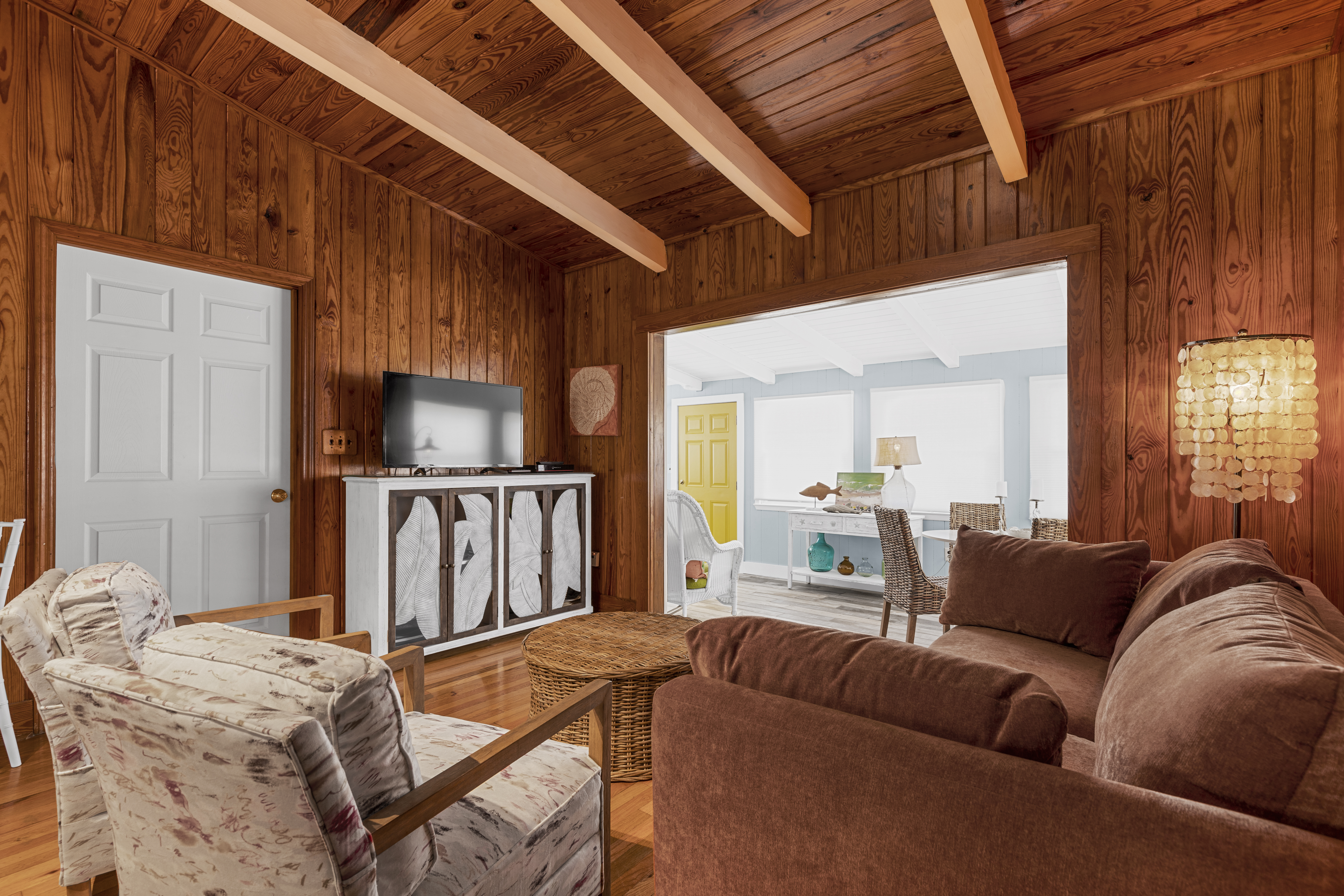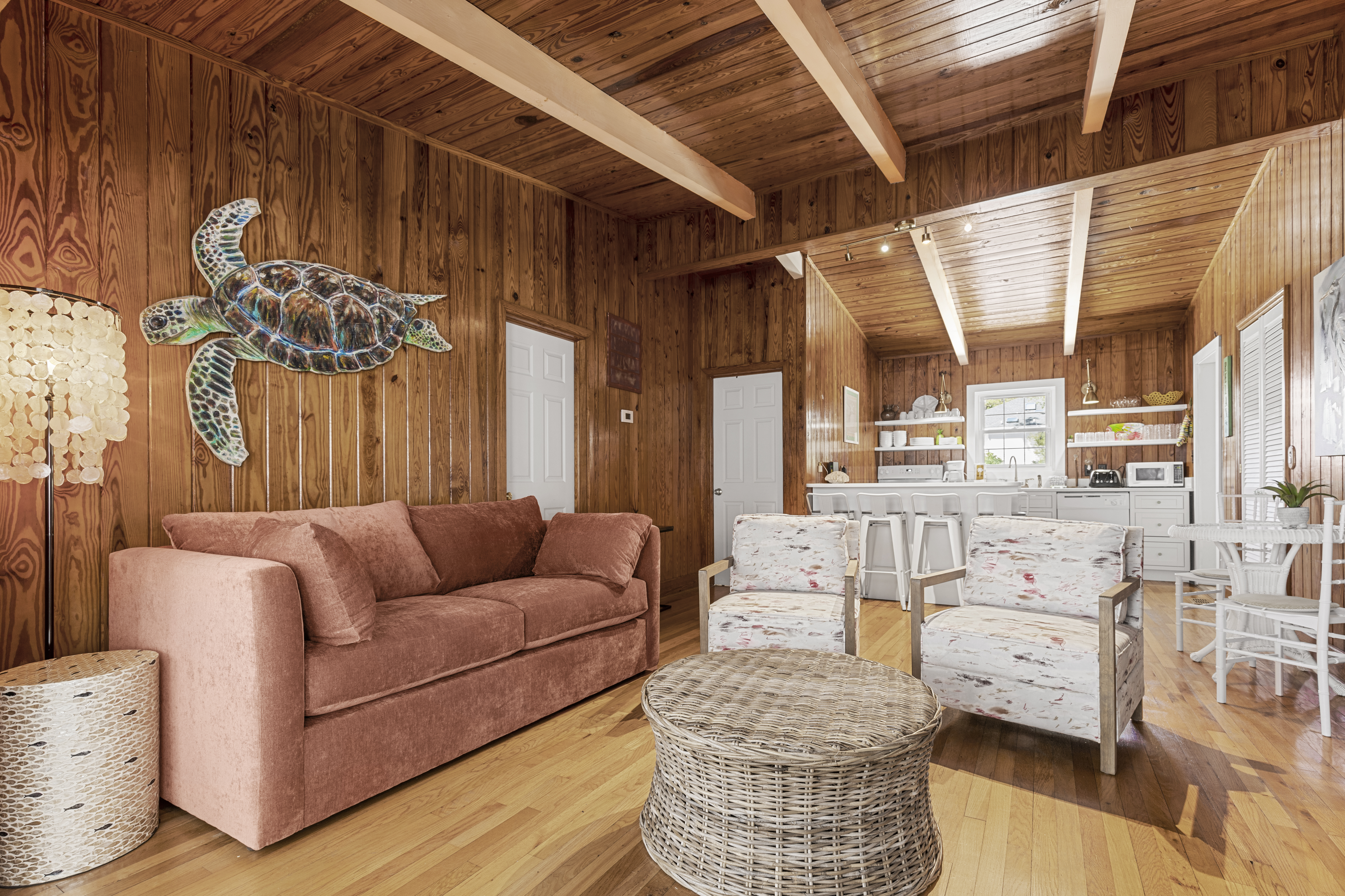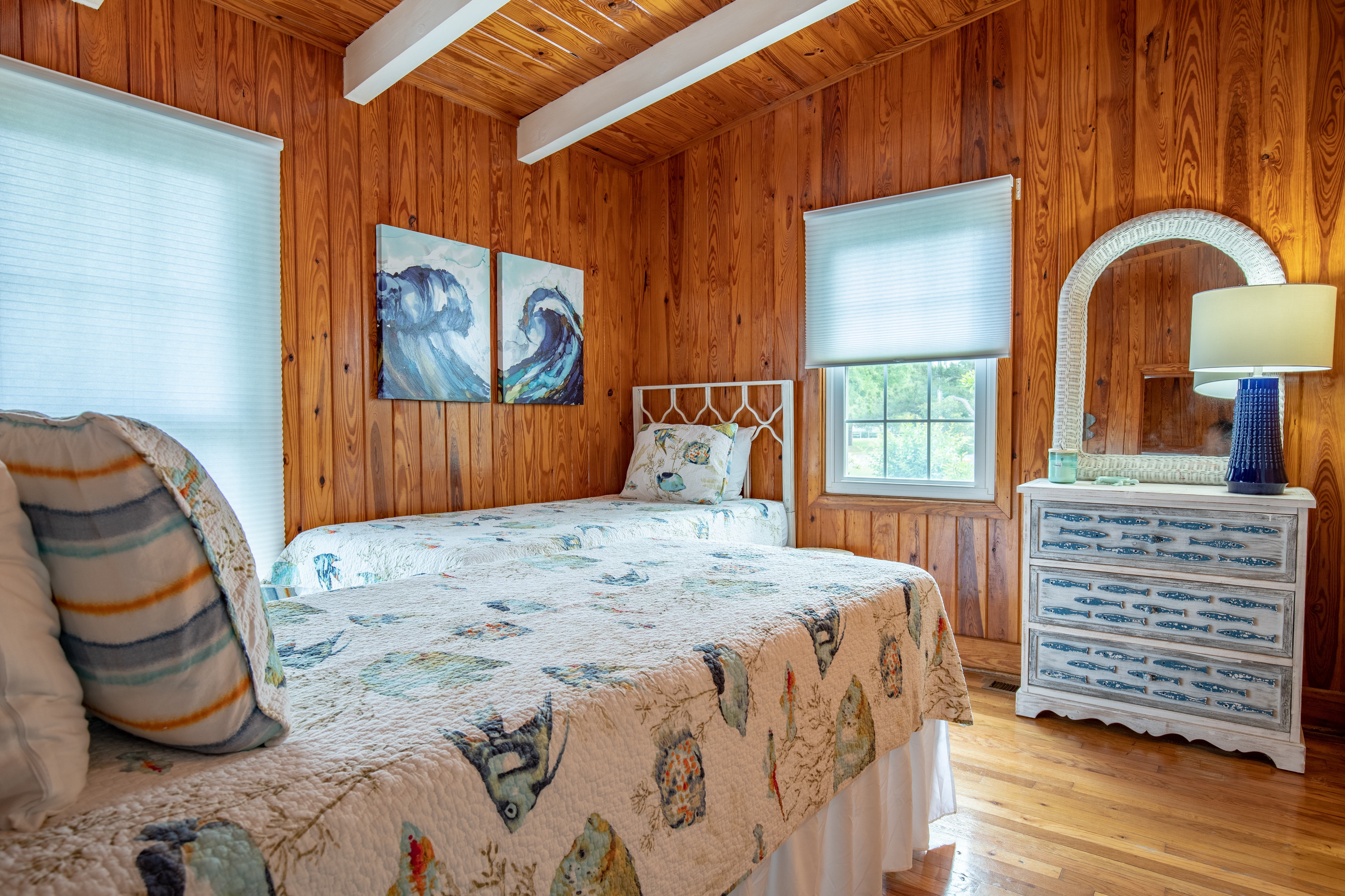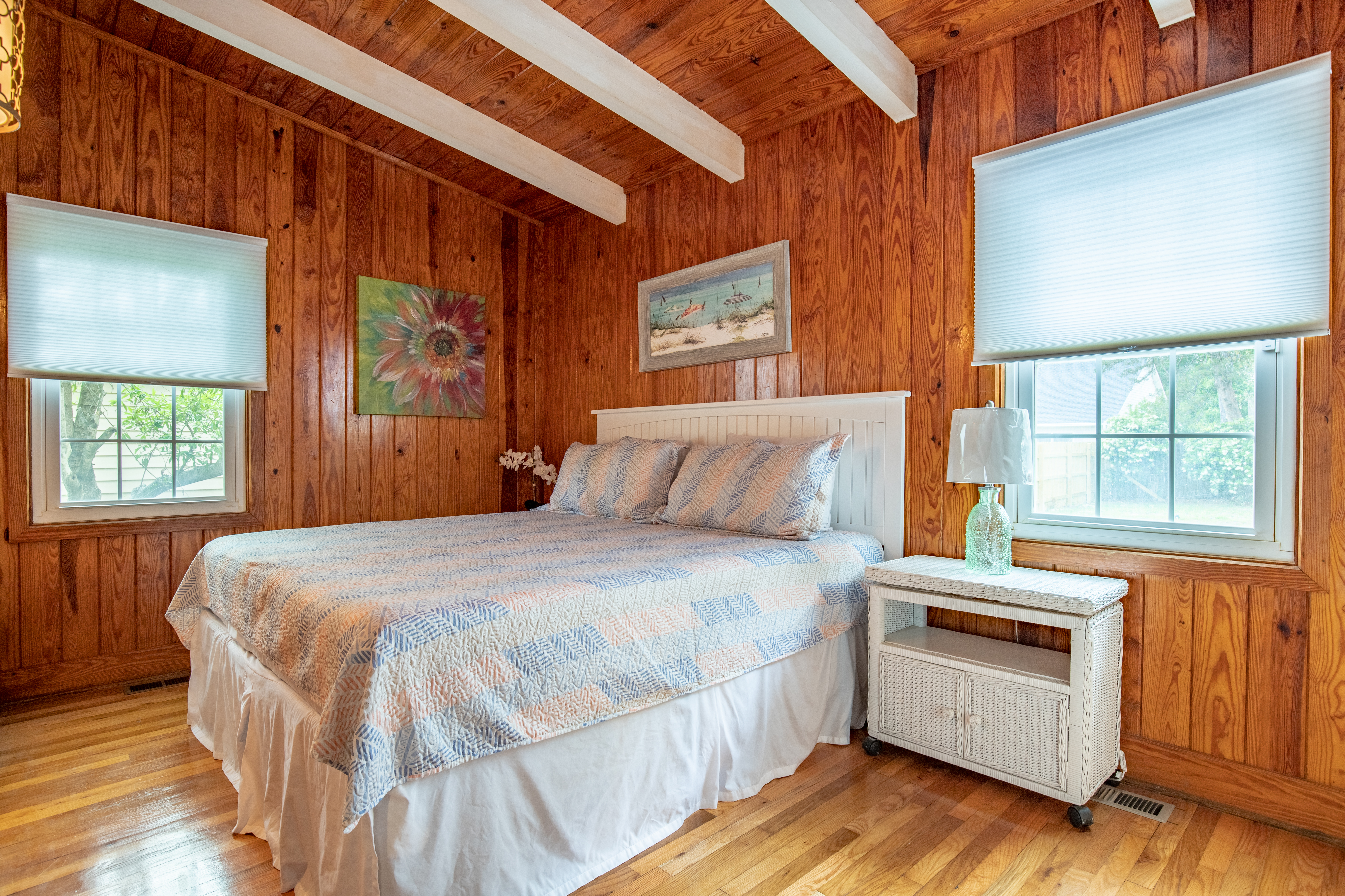 This lovely cottage home is just 2 short blocks to the beautiful Atlantic blue waters in the Crescent Beach area. This great beach house has been smartly renovated and family friendly details make it summer ready. The house is wonderful and full of vintage charm, windows, knotty pine wood and high soaring ceilings. Fresh paint, floors, bedding and furnishings, all fully stocked for you to enjoy. Some modern touches but still a blend with the original details.