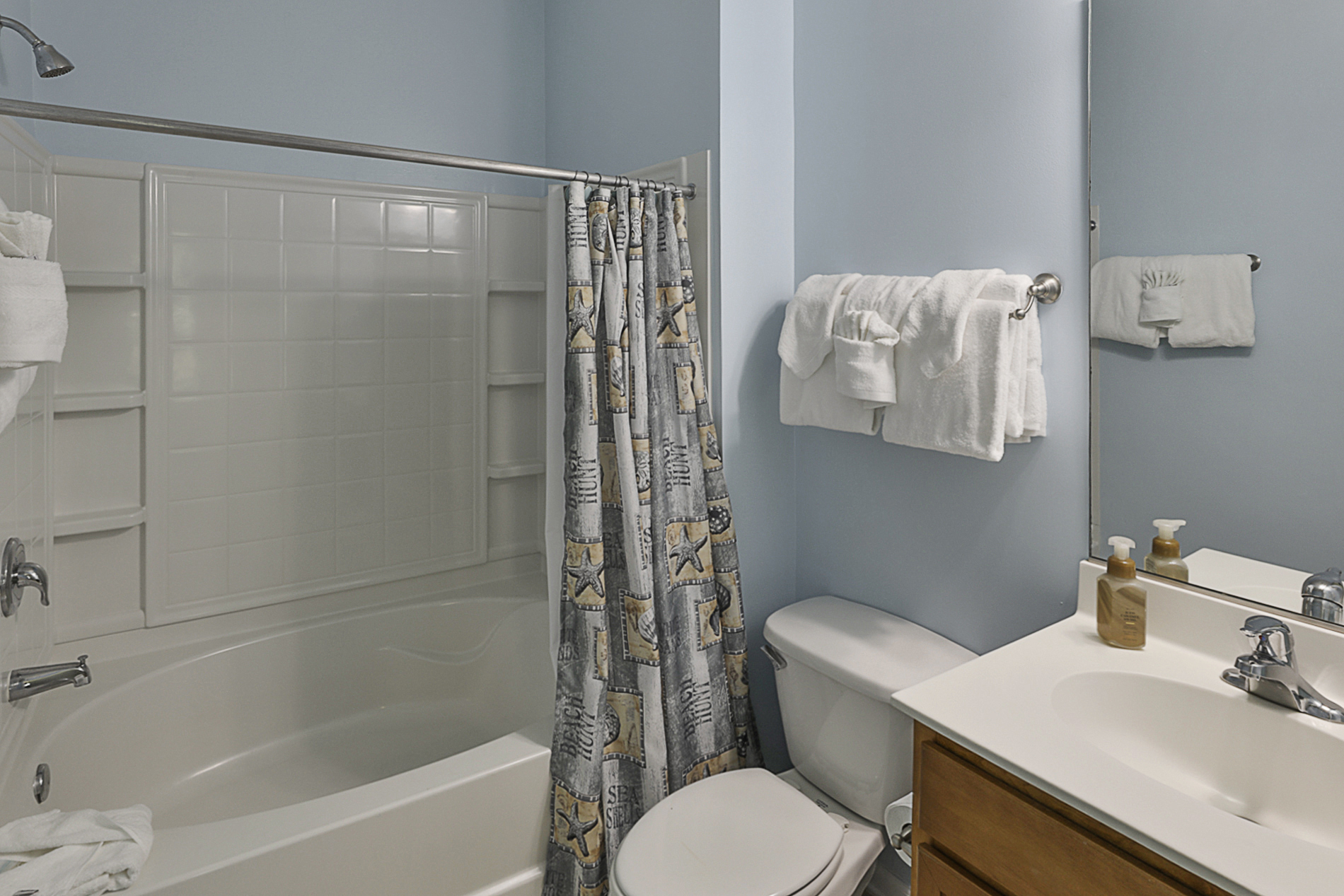 I have stayed at several condos in Barefoot Resort over the years. This condo is mediocre at best. There was a roll and a half of toilet paper, no Kleenex, no dish rags or dish towels, No dish soap. We had to request a new toaster as the one we had didn’t work. There were cob webs hanging from the ceiling fans and in the corners of the room. Bugs smashed on the wall in the dining room. Rooms are in desperate need of painting. Don’t expect any homey touches, this is strictly a vacation rental property. I was so disappointed. And be prepared to pay an additional $300 when you check in for any damages. I did get a reimbursement check in the mail after I got back home. There is no contact from the condo owner, just the rental company.- Anonymous from Logan, Posted: 5/28/2021